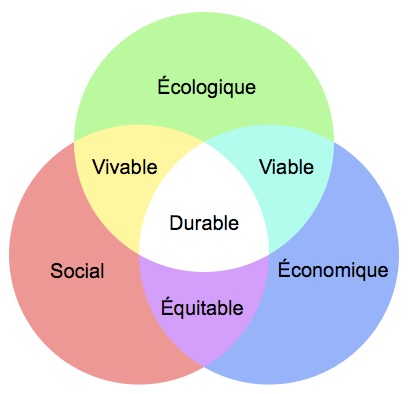 Ce schéma, vous le connaissez peut-être… il replace le développement durable au centre des notions qui le compose. Il s’agit des piliers du développement durable.