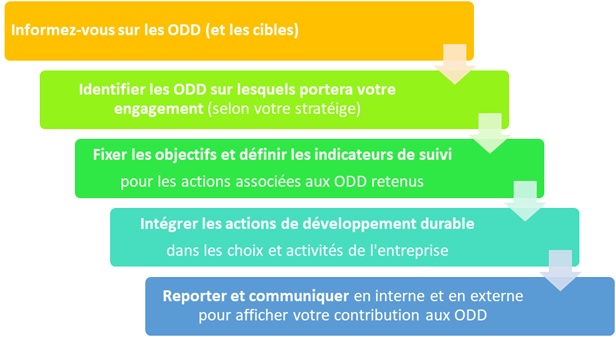 • Communiquez et valorisez votre contribution au DD : affichez visiblement votre roue des ODD complétée.