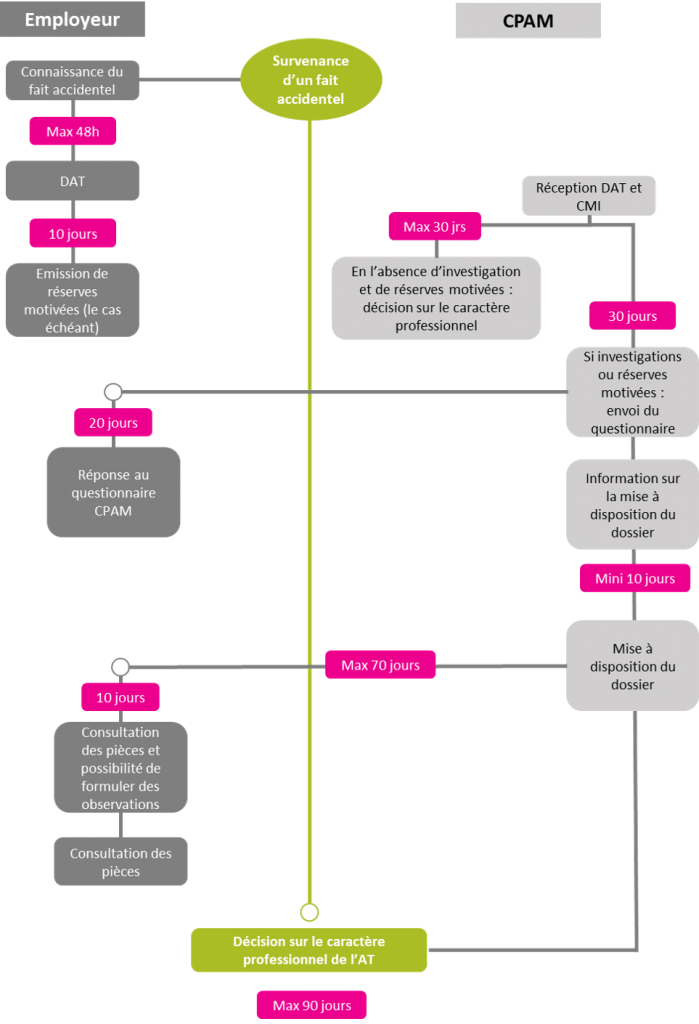 Le Décret n° 2019-356 du 23 avril 2019 relatif à la procédure d’instruction des déclarations d’accidents du travail et de maladies professionnelles du régime général, est entré en vigueur le 1er décembre 2019. Il instaure de nouvelles règles dans la formulation de réserves par l’employeur et l’instruction des dossiers par la Caisse Primaire d’Assurance Maladie (CPAM) pour les accidents du travail (AT) et maladies professionnelles (MP) déclarés à partir de cette date.